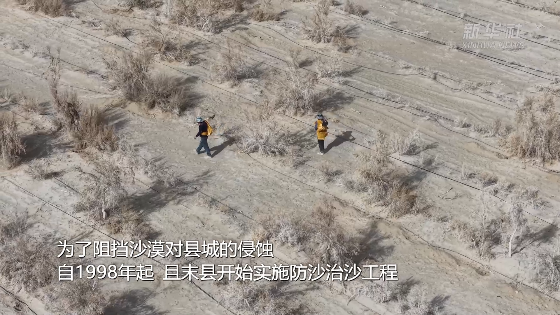 且末县位于塔克拉玛干沙漠东南部,三面被沙漠包围。为了阻挡沙漠对县城的侵蚀,自1998年起,且末县开始实施防沙治沙工程,并逐步探索在治沙植物梭梭根部接种大芸,实现了生态与经济双赢。